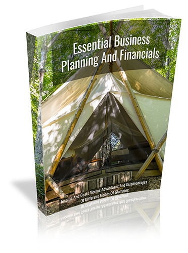 Included in your purchase is my 'The Essential Business Planning And Financials' eBook, which demonstrates expected costs, potential income, advantages and disadvantages, and likely occupancy of the most popular glamping models. Plus an Excel spreadsheet with financial projections for an example site in Phase 3.
